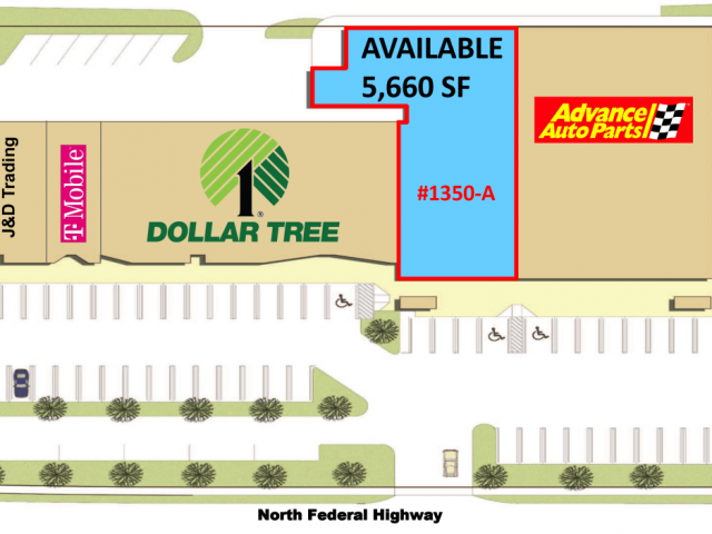 The Rotella Group has been retained as the exclusive agent for leasing a 5,660 SF Space located at 1350 N Federal Hwy, Delray Beach, Palm Beach County, in the Southeast Florida Market, just north of downtown Delray (E Atlantic Avenue).• Join Advance Auto Parts and Dollar Tree